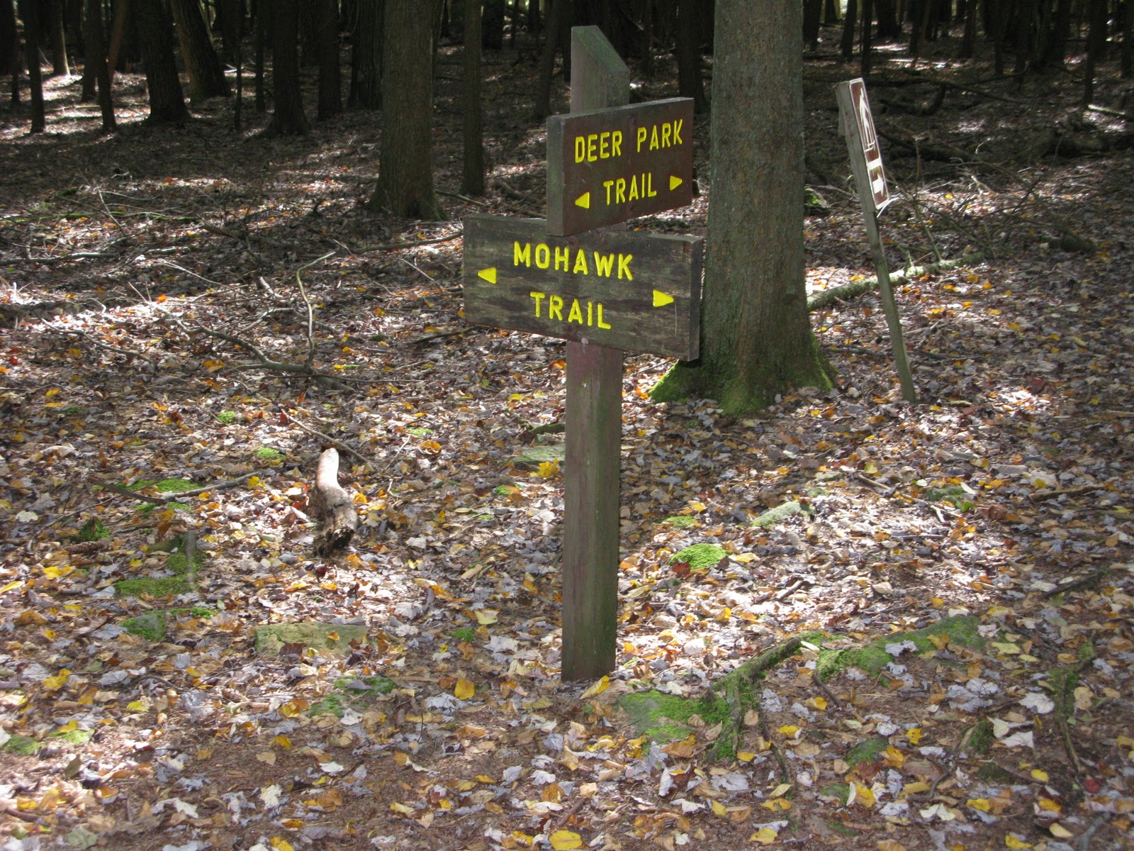 On the right, we approached Seneca Trail. This, again, is considered difficult hiking and I think it would be if you were coming up the mountain. We were heading down. (We had our punishment back on Ridge.) Seneca connects with Mohawk and then Deer Park. We took toMohawk and stayed on it down through some unbelievable old forests. The trail was rocky, steep and narrow in places, but it was so nice. I really liked this trail. After looking at the map, the part of Mohawk trail the leads to the opening of the park wasn’t there. Knowing we hiked it, I emailed the park ranger and he told me that they decommissioned this park of Mohawk and removed it from the map. That is too bad! It is gem. I guess it will continue to deteriorate, but I’d be tempted to do it again. It would be very steep and difficult should you use it to come up the mountain. Not for the inexperienced or out of shape.