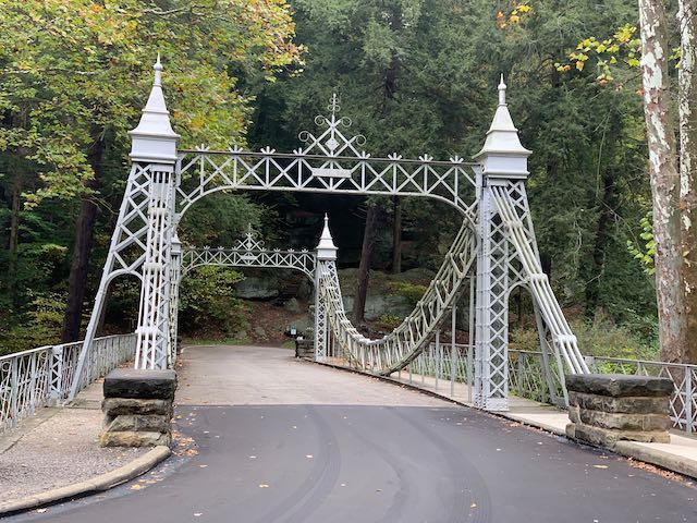 We picked a beautiful fall day. Since it is Youngstown, I didn’t have high hopes, but was pleasantly surprised at the unique bridges, surprise rock formations, and the old mill, Lanterman’s Mill. The park wasn’t well marked, but it was clean and safe. The terrain was easy to medium level of difficulty.